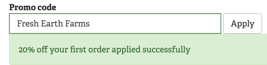To get your 20% discount, use the promo code 'Fresh Earth Farms' at checkout.