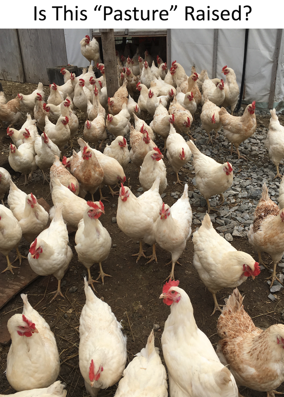 In fact, since even the factory organic laying hens are required to have some sort of ‘access’ to the outside, 100% of certified organic eggs appear to qualify as “Pasture Raised” even though the hens may never see the light of day outside.