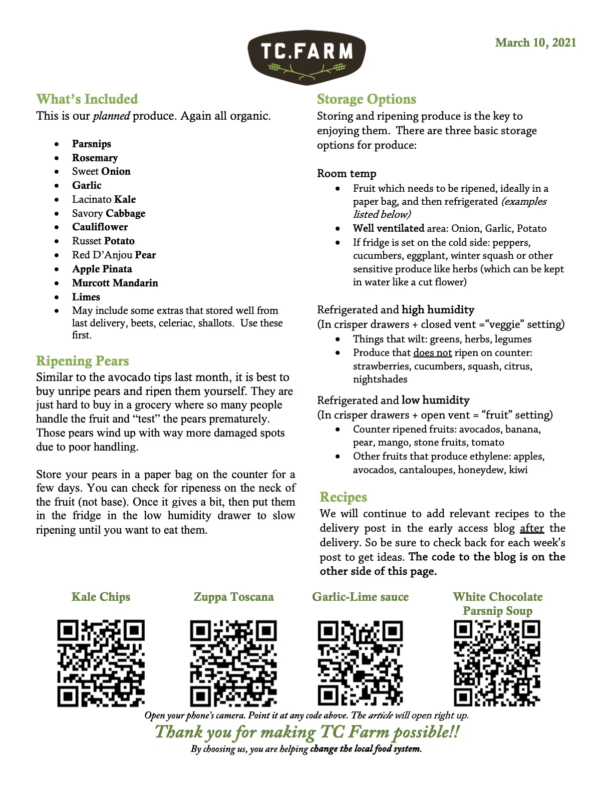 Turns out not everyone got the printed sheet that was supposed to come with this week's delivery.