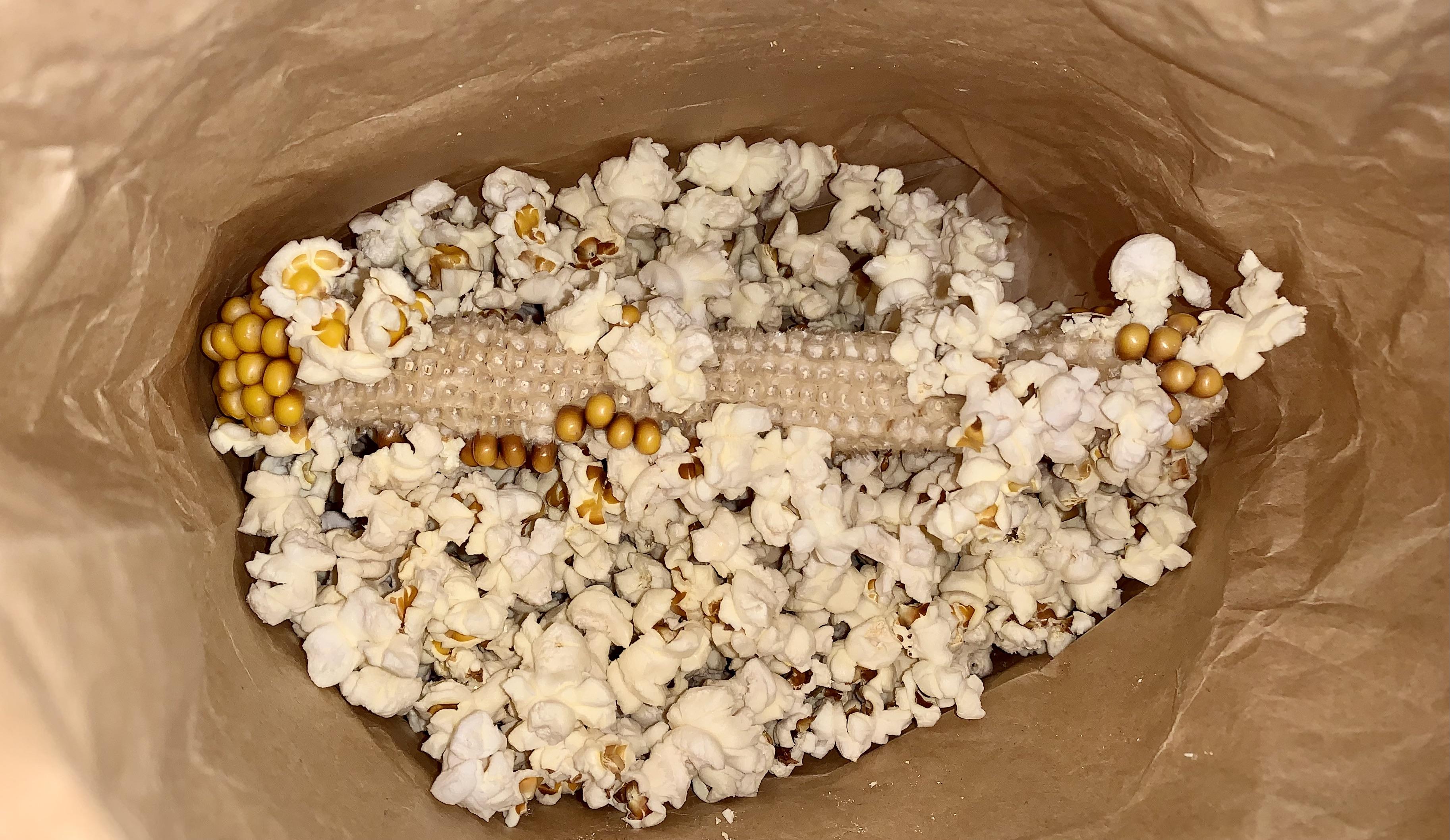 Empty out popped kernels into a bowl and return cob to the paper bag and microwave cob on the popcorn setting for another minute or until popping slows to between 2-3 seconds.