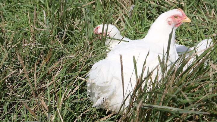 However, the Cornish Cross birds eat less grain and provide more food vs. bones for that grain. This means fewer emissions for the grain harvest, handling and processing. It also means more food can be raised per acre.