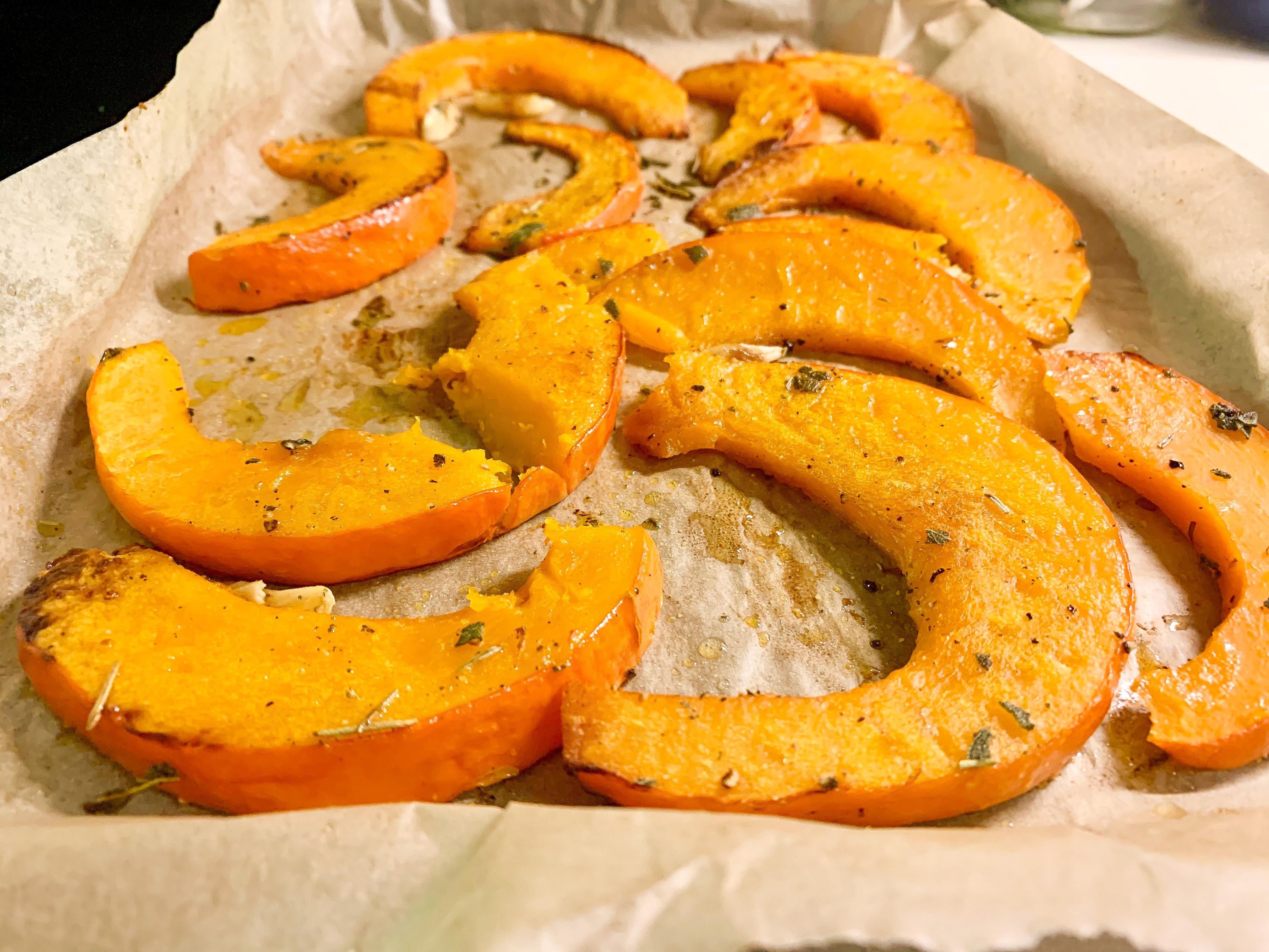 - Now the squash can be roasted as two halves, cut into slices or into cubes for even faster cooking.