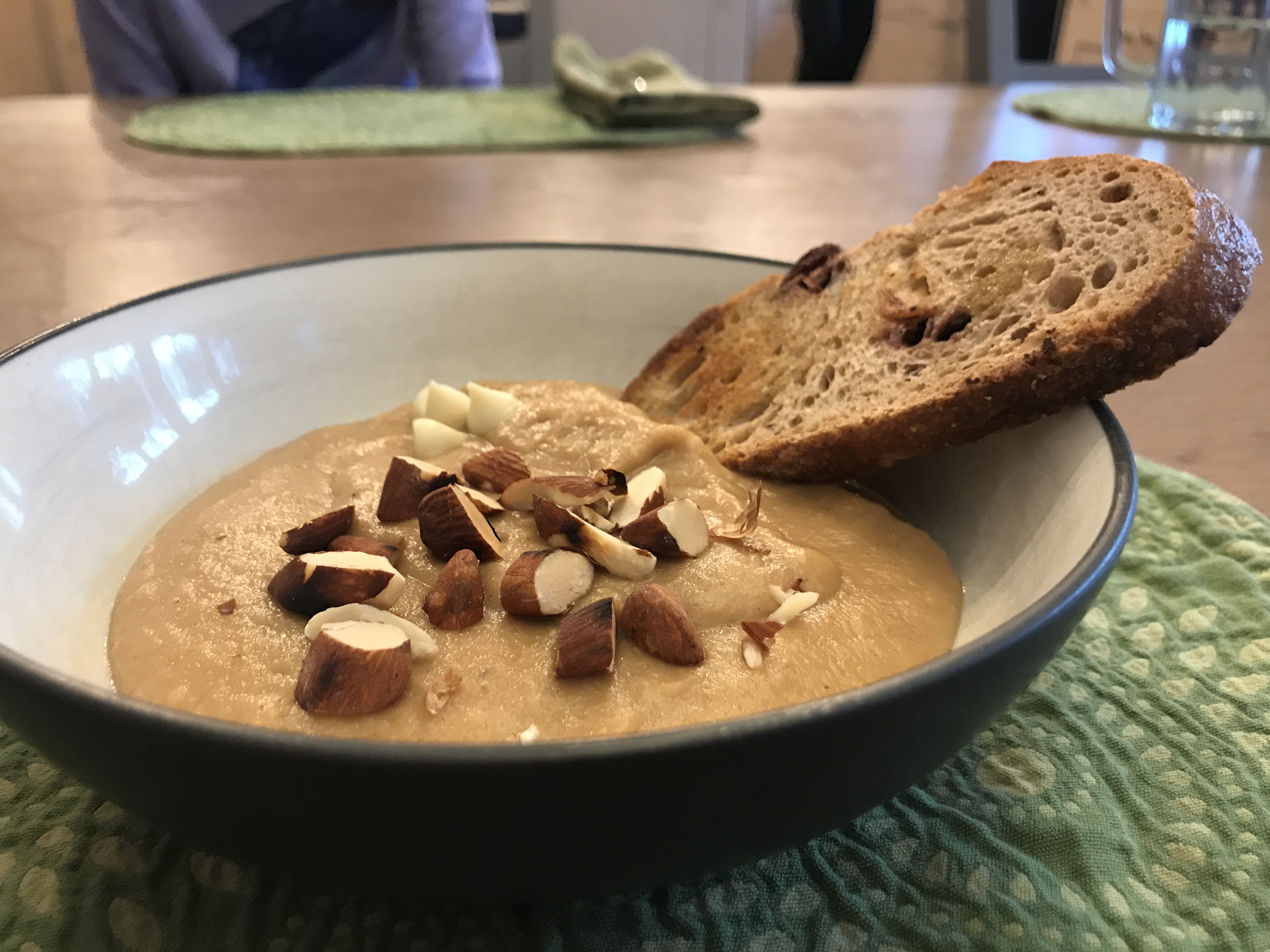 - Use an immersion or regular blender to puree until smooth - adding broth as needed to get a light texture.