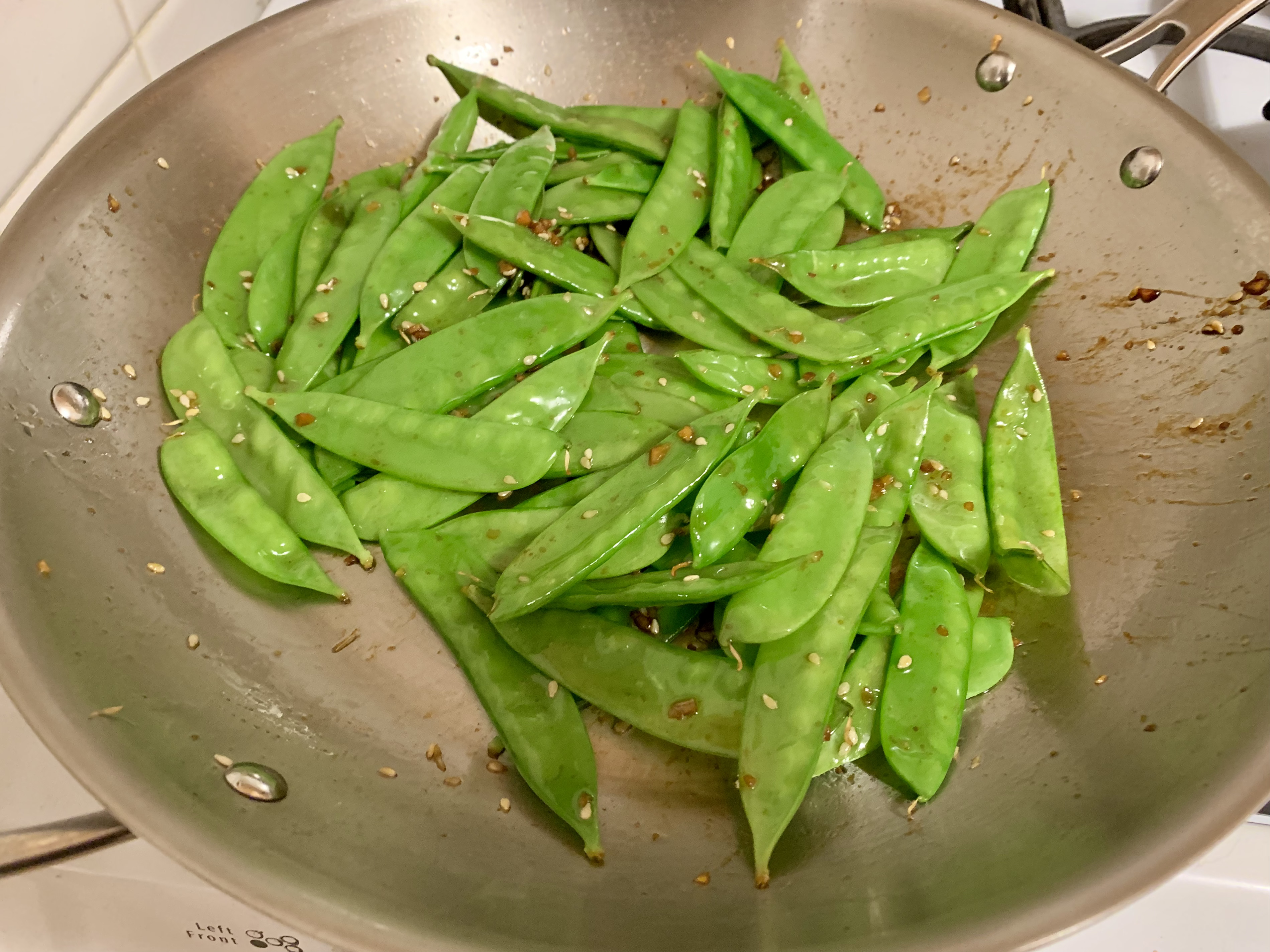 Add peas and sesame seeds, tossing frequently until peas are cooked through, 3-5 minutes.