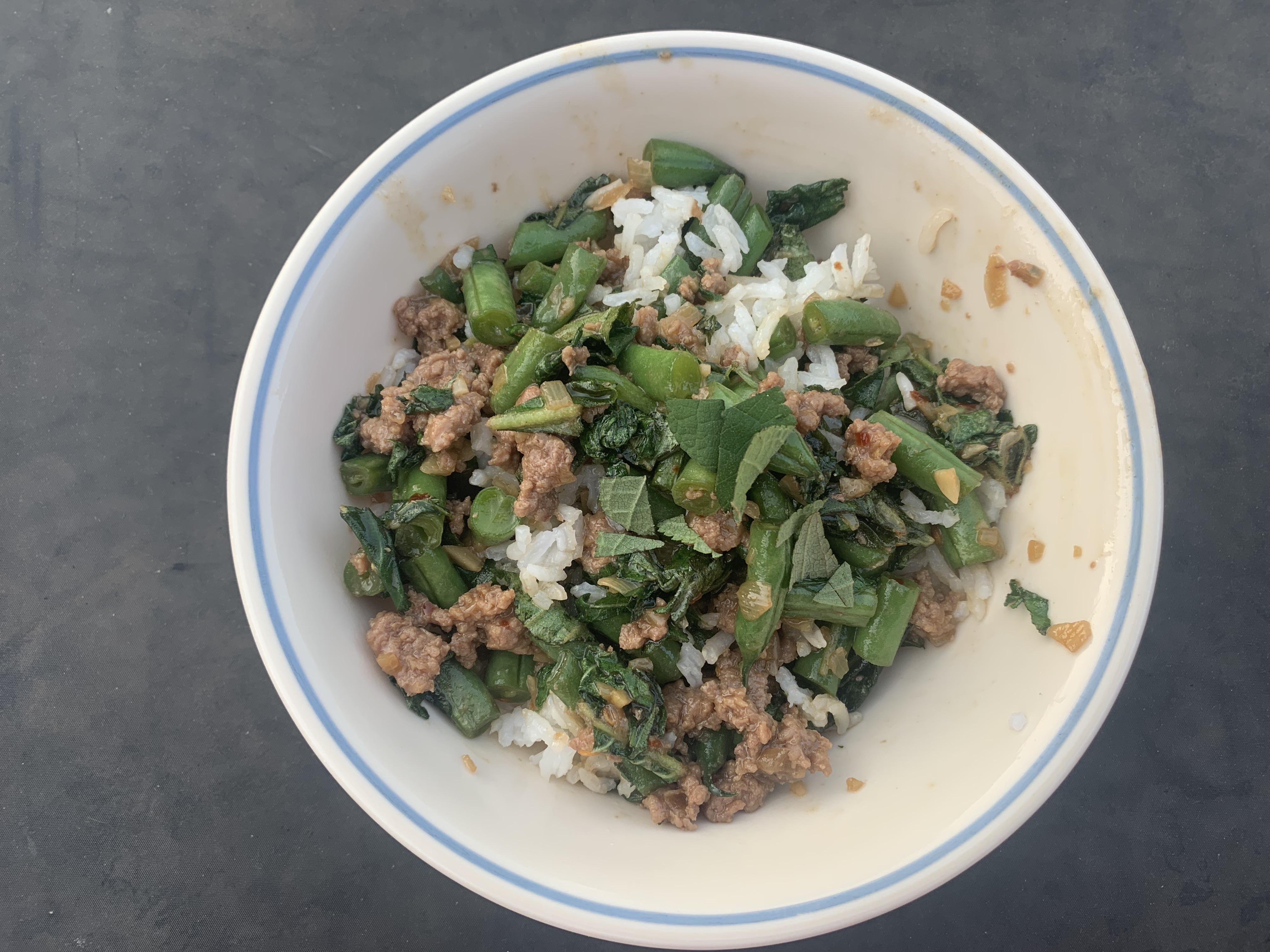 4. Set meat aside and add garlic, shallot, and jalapeño to the hot pan. Sauté for 30 seconds, until fragrant. Add green beans. Cook for 3-4 minutes or unitl green beans are slightly cooked but still crunchy.