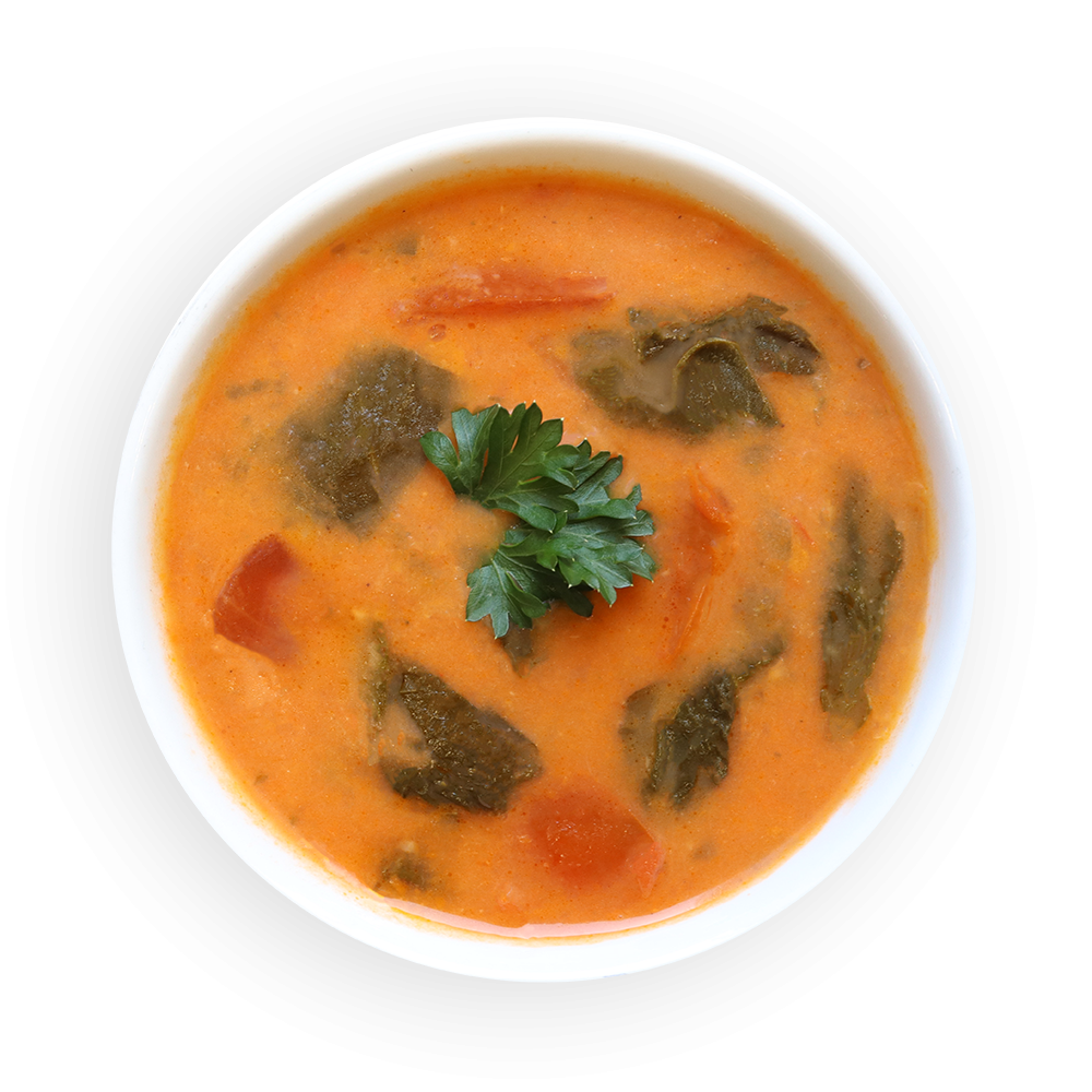 Ingredients:Vegetable Stock* (Water, Onions*, Celery*, Carrots*, Tomatoes*, Cold Pressed Sunflower Oil*, Garlic*, Parsley*, Thyme*, Black Pepper*, Cloves*), Crushed Tomatoes*(Tomatoes*, Tomato Puree* (Water, Tomato Paste*), Sea Salt, Citric Acid), Coconut Milk* (Coconut*, Water, Guar Gum*), Onions*, Carrots*, Spinach*, Cold Pressed Sunflower Oil*, Balsamic Vinegar**, Garlic*, Salt, Basil*, Black Pepper*, Thyme*.