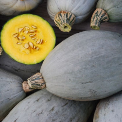Sibley squash is among the very best for flavor, sweetening as it ages, and it keeps until February! This once-revered brown- seeded heirloom first surfaced in the Missouri River watershed in the 1830s and is similar to kindred varieties found among the Winnebago Indians. Hiram Sibley, introduced it to commerce in 1887 through his seed company in Rochester, NY.
